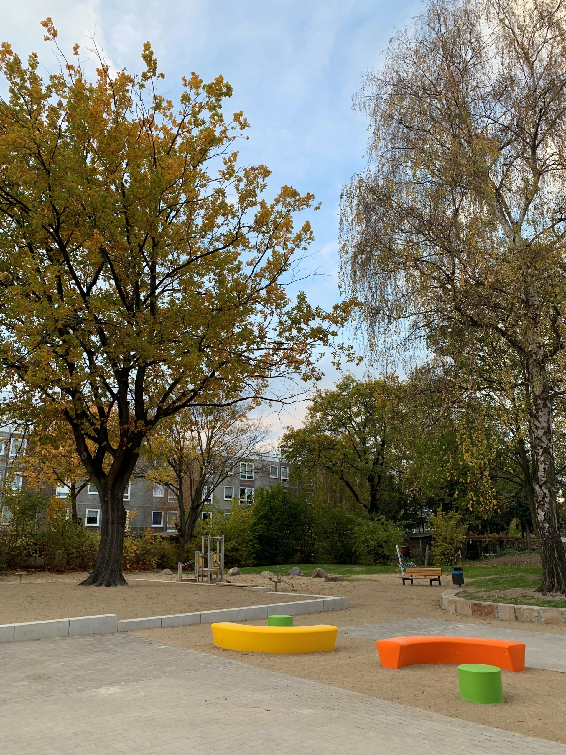 Kernstück sind neben den fünf sanierten Spielplätzen die beiden vollständig neugestalteten Spielplätze im Polluxhof und Auf der Horst/Saturnring, die als Spiellandschaft unter Einbeziehung des Umfeldes konzipiert sind.